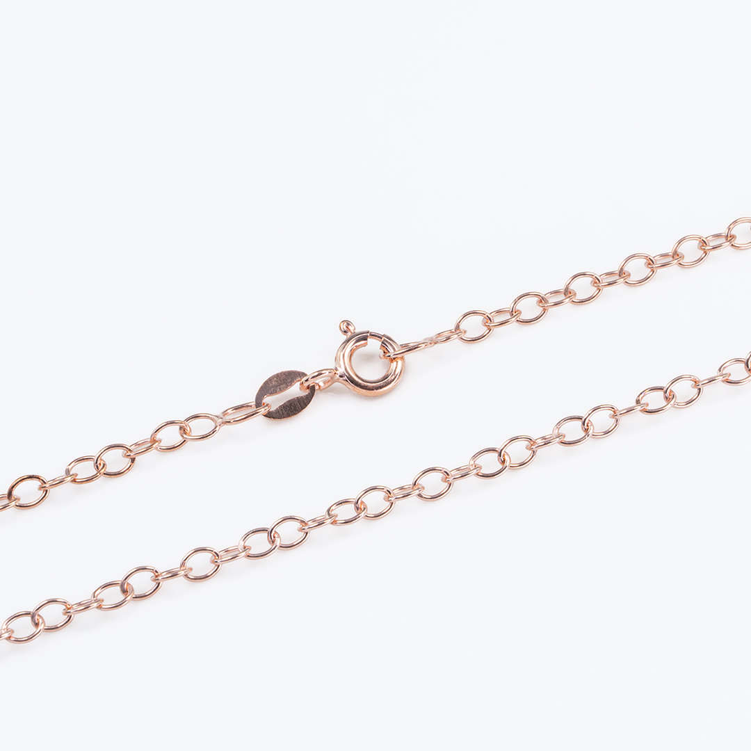 Diese elegante Ankerkette aus rosévergoldetem Sterlingsilber 925 zeichnet sich durch ihre zarte Breite von 2,7 mm aus. Der Federringverschluss bietet einen sicheren Verschlussmechanismus und ermöglicht ein müheloses An- und Ablegen der Kette.