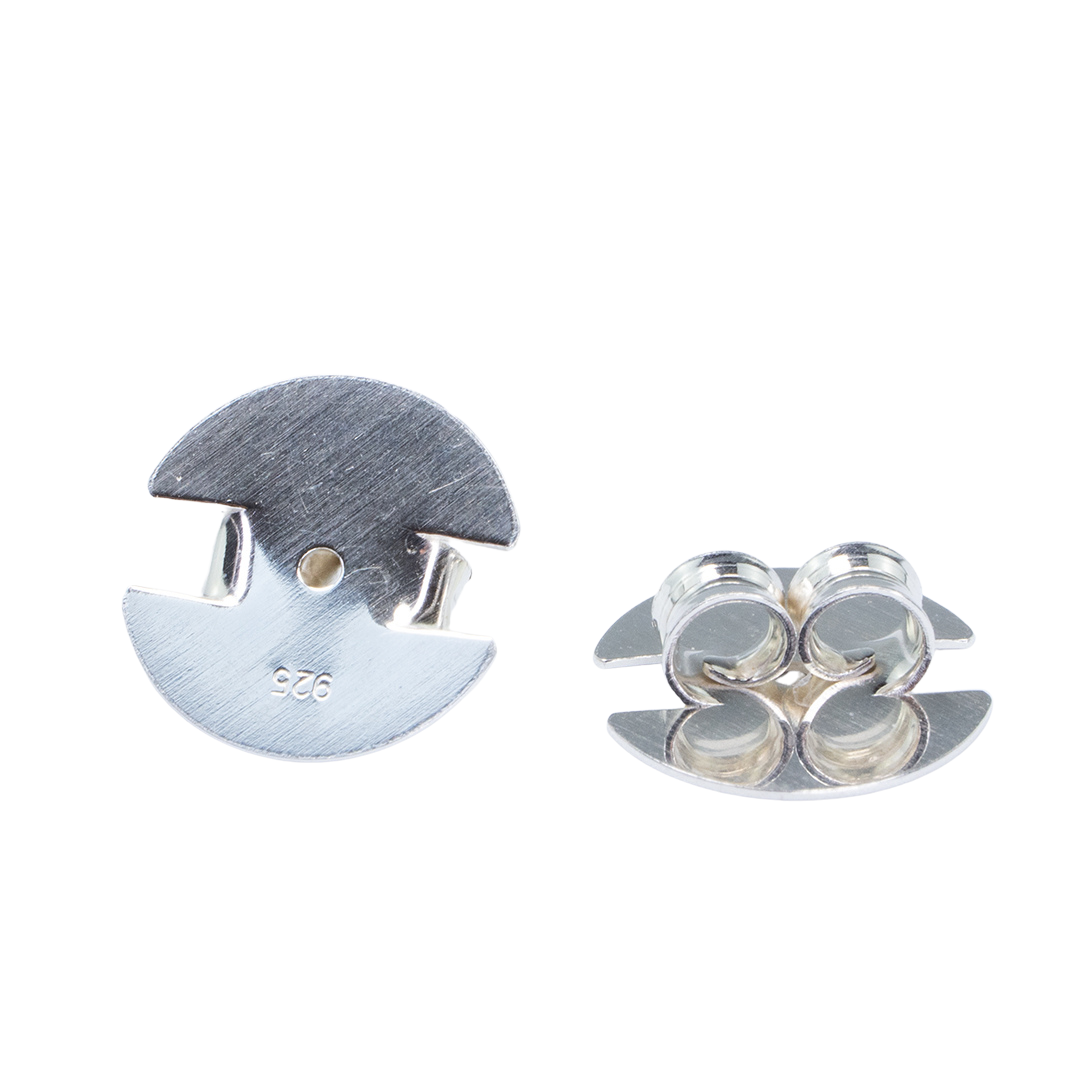 Diese stabilen Ohrmuttern bieten deinen Ohrsteckern optimalen Halt, besonders bei schwereren Ohrringen und geweiteten Ohrlöchern. Die großzügigen Abmessungen sorgen für einen sicheren Sitz und ein angenehmes Tragegefühl.