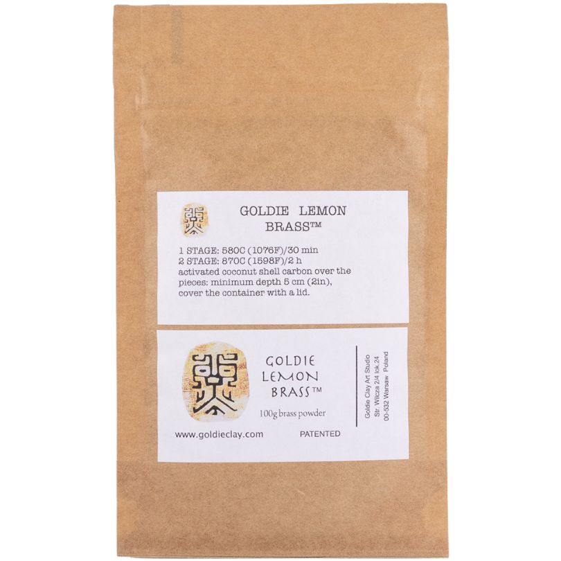 Goldie Lemon Brass Pulver enthält etwa 90 % Messing und 10 % Bronze. Die enthaltenen Bindemittel sind organisch und ungiftig.