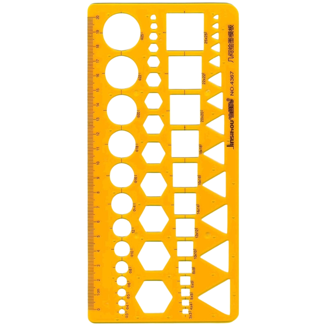 Die Schablone eignet sich zum Zeichnen bzw. Ausschneiden von 4 verschiedenen geometrischen Flächen in jeweils 13 unterschiedlichen Größen