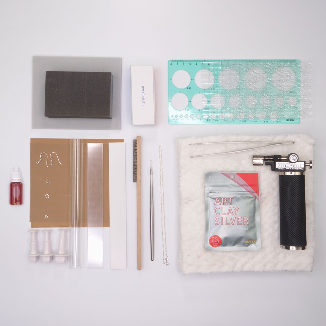 Erstelle deinen eigenen Silberschmuck 999 bei dir zu Hause am Küchentisch. Dieses Set beinhaltet alle Werkzeuge, Materialien und Zubehör, die du für die Schmuckgestaltung mit Metal Clay benötigst. Angefangen von Silverclay, hochwertigem Bearbeitungs- und Modellierwerkzeug, bis hin zum Brenner und der Brennunterlage für die vollständige Sinterung.