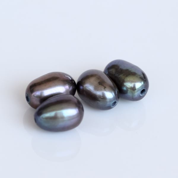 Süßwasserperle schwarz/grün, oval 4x8mm, durchgebohrt, 1 Stück