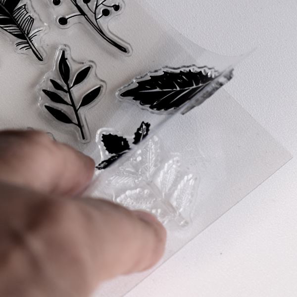 Die klaren Silikonstempel mit Hilfe eines Acrylglasblockes eindrücken/stempeln. Nicht im Lieferumfang enthalten!