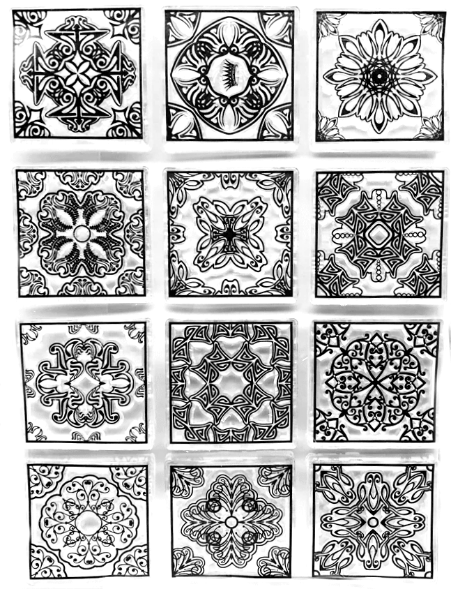 12 Stück Silikonstempel in quadratischer Form je 45 mm x 45 mm