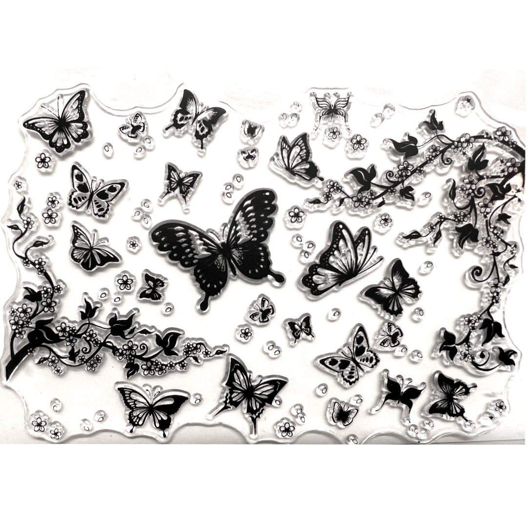 Größe 15 x 10 cm, Viele verschiedene Schmetterlinge und Ranken mit Miniblüten