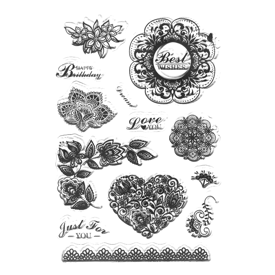 Der klare Stempel haftet auf einer Plexiglasplatte bzw. auf einem Acrylglasblock. Nicht im Lieferumfang enthalten!