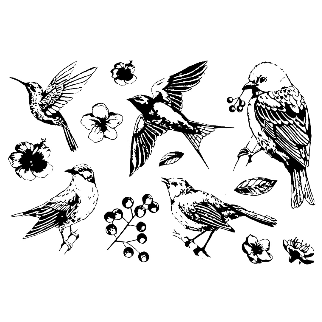 Silikonstempel Vögel, Blüten, Zweig