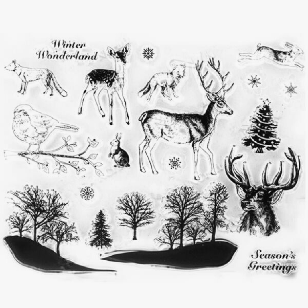 Mobile Preview: Silikonstempel Waldtiere und Bäume
